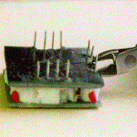Care should be taken when crackling the epoxy so as not to damage the protruding mounting pins. Make several cuts close to each pin. Beware of epoxy pieces flying across the room, though. | ![]() |