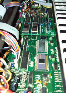 Note: If you have one, use an angled dental mirror or utility mirror (Radio Shack has them) to "look under" the RE! board from various edges to confirm the proper alignment. In doing so you might notice the 7-pin header extending down to RAM socket IC21. When the primary header for IC14 is properly aligned, this second header will also be properly aligned so as to plug into the last seven pins ofthe RAM socket.